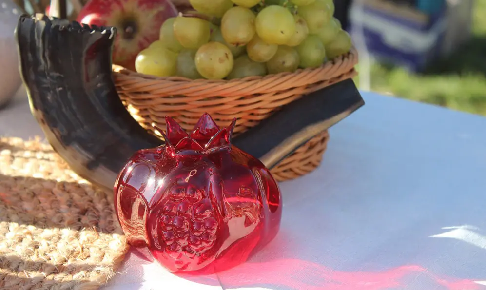 Зіркою столу є кругла хала – така ж плетінка як і на шабат, проте вона обов’язково плететься круглої форму, бо символізує коло життя, яка запускається знову. А ще, знаюча господиня обов’язково поставить на стіл гранат – символ 613 заповідей, які має тримати громада, скільки і зернят у цьому фрукті.