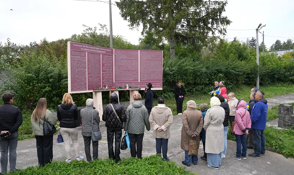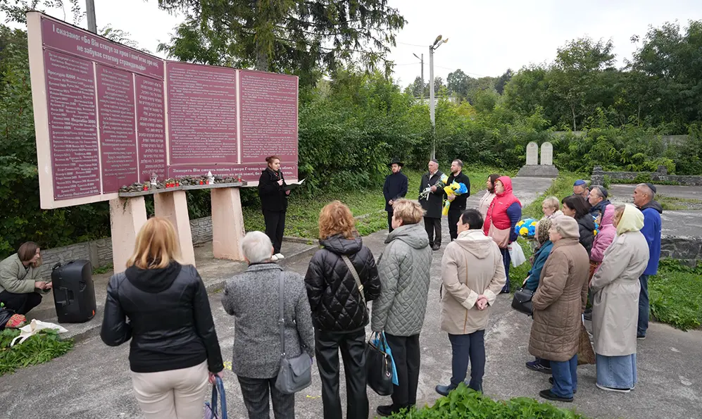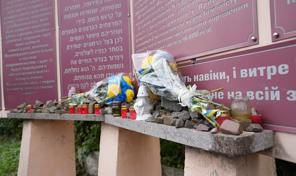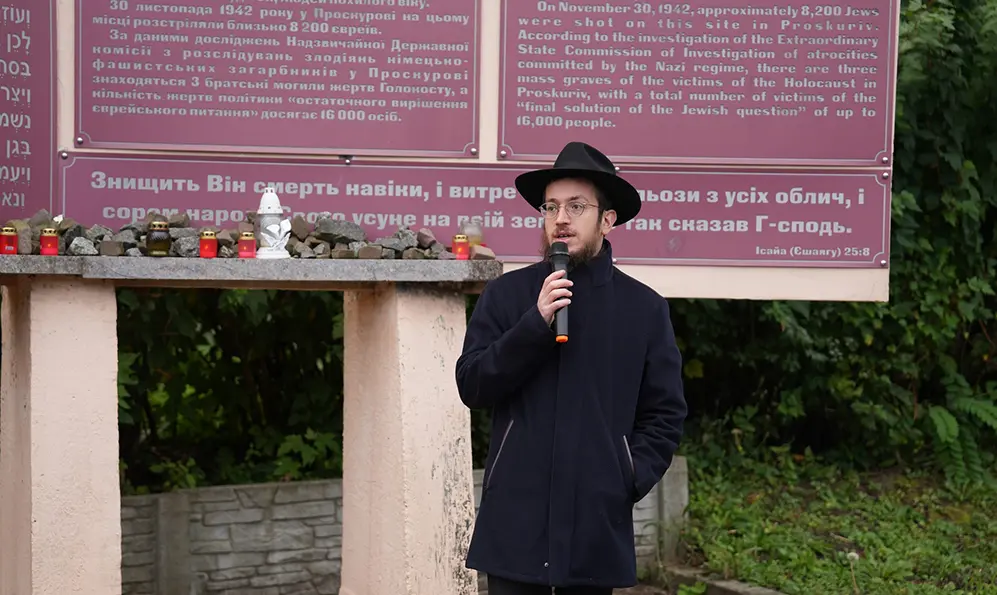 Зауважимо, що пам’ятний захід відбувся на території Меморіального комплексу пам’яті жертв Голокосту, який розташовується у Хмельницькому поруч з дендропарком і є відкритим музеєм, експозиція якого повідає унікальні історії людей, які постраждали від нацистської ідеології. Так, восени 1942 року на території сьогоденного меморіалу були знищено 8200 проскурівчан тільки за ознакою расової приналежності. Коли за переписом 1939 року на Хмельниччині проживало 122 тисячі євреїв, чисельність громади скоротилась на 115 тисяч під час війни, а понад 10 тисяч євреїв було розстріляно у тільки Проскурові.