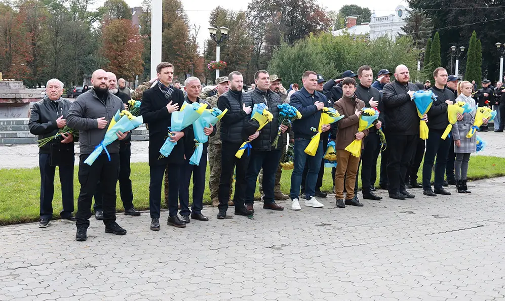 На головній площі обласного центру зібралися керівники області та міста, представники силових структур, жителі та гості. Вони поклали квіти до Стели пам’яті Героїв Небесної Сотні та учасників російсько-української війни.