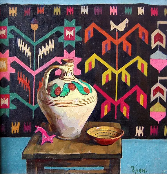 Довідка: ГРЕН Олександр Львович (23. 05. 1898, м. Псков, Росія — 1983, м. Камʼянець-Подільський Хмельницької обл.) — живописець. Походив із шведської дворянської родини. До 1917 навчався в кадетському корпусі (викладач малювання І. Мозалевський); військову освіту не завершив через революційні події. 1916—17 перебував у Севастополі та Євпаторії (нині АР Крим), де служили його брати. 1918, коли батько у чині генерал-майора вийшов у відставку, сімʼя переїхала в Камʼянець-Подільський. Після його смерті 1919 Г. з братом змушені були організувати майстерню з виготовлення дитячих механічних іграшок, у якій працювала вся родина (брат вигадував нові види іграшок, Г. їх художньо оформлював). Від 1920 — художник, а згодом — завідуючий студії-майстерні Політосвіти; був відряджений на курси при Інституті підвищення кваліфікації майстрів образотворчого мистецтва в Москві, де в майстерні Б. Йогансона вдосконалював володіння класичною живописною манерою. У першій третині 20 ст. працював у Політвідділі народної освіти УРСР; створював плакати для Всеобуча; оформляв робочі клуби, агітаційні поїзди тощо; виконував роботи для театру (створював декорації, розписував сцени, вестибюлі та ін.). Разом з А. Петрицьким здійснив розписи клубу на тему «Дума про Самійла Кішку» (клуб зруйновано під час 2-ї світової війни, не збереглося жодного розпису; уцілілий ескіз — у Центральному архіві-музею літератури і мистецтва України в Києві). Від 1924 — вчитель у школах № 3, № 7; викладач у педагогічному інституті; давав уроки учням художньо-промислової школи. Був учасником товариства «Просвіта», наукового товариства при ВУАН, комітету охорони памʼяток старовини, мистецтва і природи (усі — Камʼянець-Подільський). Колекціонував і реставрував оригінальні предмети давнього подільського побуту, що згодом використовував у своїх творчих композиціях. Близько 1926, за спогадами сестер, уперше намалював подолянку в національному одязі. Митець перебував під постійним контролем НКВС (його звинувачували в «контрреволюційних діях», сепаратизмі й націоналізмі, «захопленні формалістичним буржуазним мистецтвом (авангардом)». Від арешту рятували виконані на замовлення міста численні портрети вождів, відомих політичних діячів, міських чиновників. 1944 організував міську, через рік — обласну художню майстерню при обласному управлінні у справах мистецтва і був її першим керівником. Працював учителем малювання та креслення, виконував окремі замовлення міськради. Його творчі роботи експонували на виставках у Чернівцях, Львові, Камʼянці-Подільському. Персональна — у Києві (1978). Деякі твори зберігаються в Історичному музеї-заповіднику та Галереї мистецтв у Камʼянці-Подільському. Джерело: ЕНЦИКЛОПЕДІЯ
