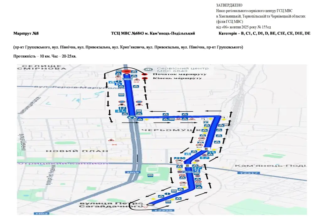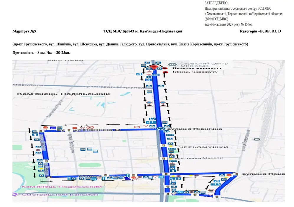 м. Кам’янець-Подільський: додано 2 маршрути, загальна кількість тепер – 9. Нові маршрути охоплюють не лише центральні вулиці міста, а й об’їзні шляхи, де кандидати можуть навчитися маневрувати в умовах реального руху.
