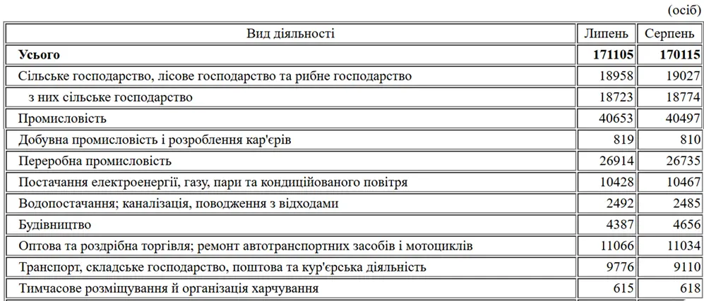 Кількість штатних працівників області в серпні становила 170,1 тисячі осіб. Це приблизно на тисячу менше, ніж у липні, та на двадцять тисяч менше, ніж наприкінці літа 2021 року (190,3 тисячі).