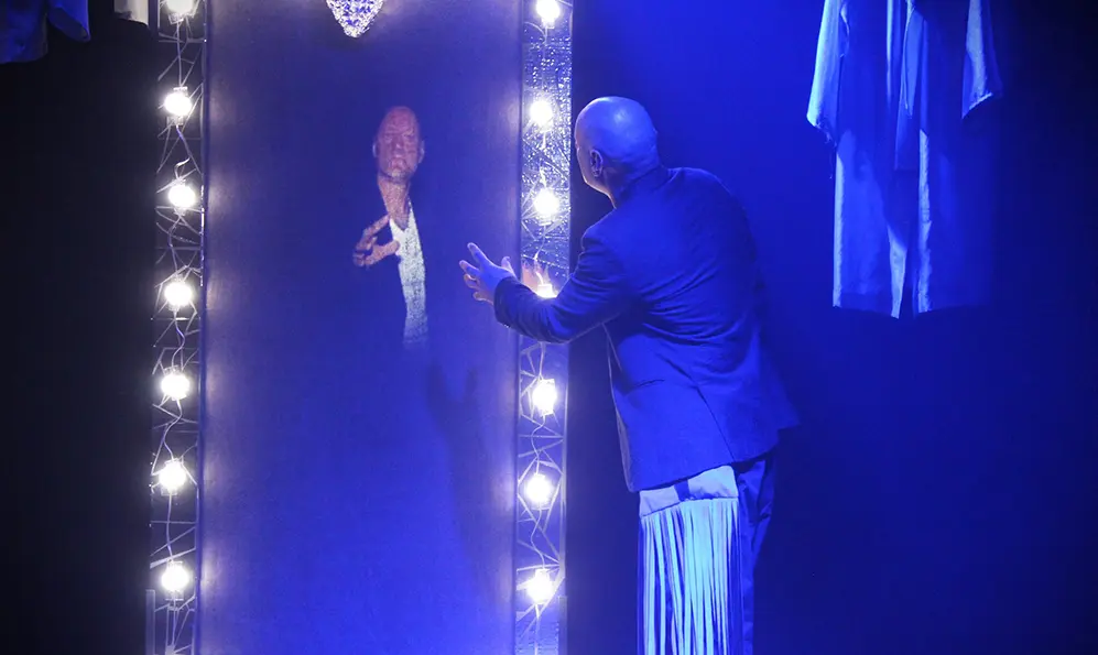 Так, варто зазначити, що вистава презентує багато новаторських режисерських і художніх рішень. Наприклад, гострі психологічні акти героя зверненні до конкретних предметів – дзеркал різної фактури і, як наслідок, ефектів взаємодії – від бутафорських до пластичного екрану, який набуває форм, які підсилюють враження від відповідного тексту і сцени.
