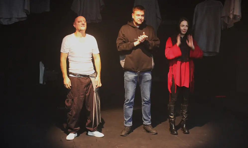 Так, герой, а радше вже сам Василь Шпунт підводиться і починає взаємодію з «працівниками» сцени, які розбирають виставу, з робочими діалогам і природніми реакціями, штибу – все було добре, перегравати не потрібно. Глядацька зала від такого завершення вибухає оваціями і криками «Браво!». Сталося, за такого Шекспіра ніколи не буде соромно перед класиками і часом.