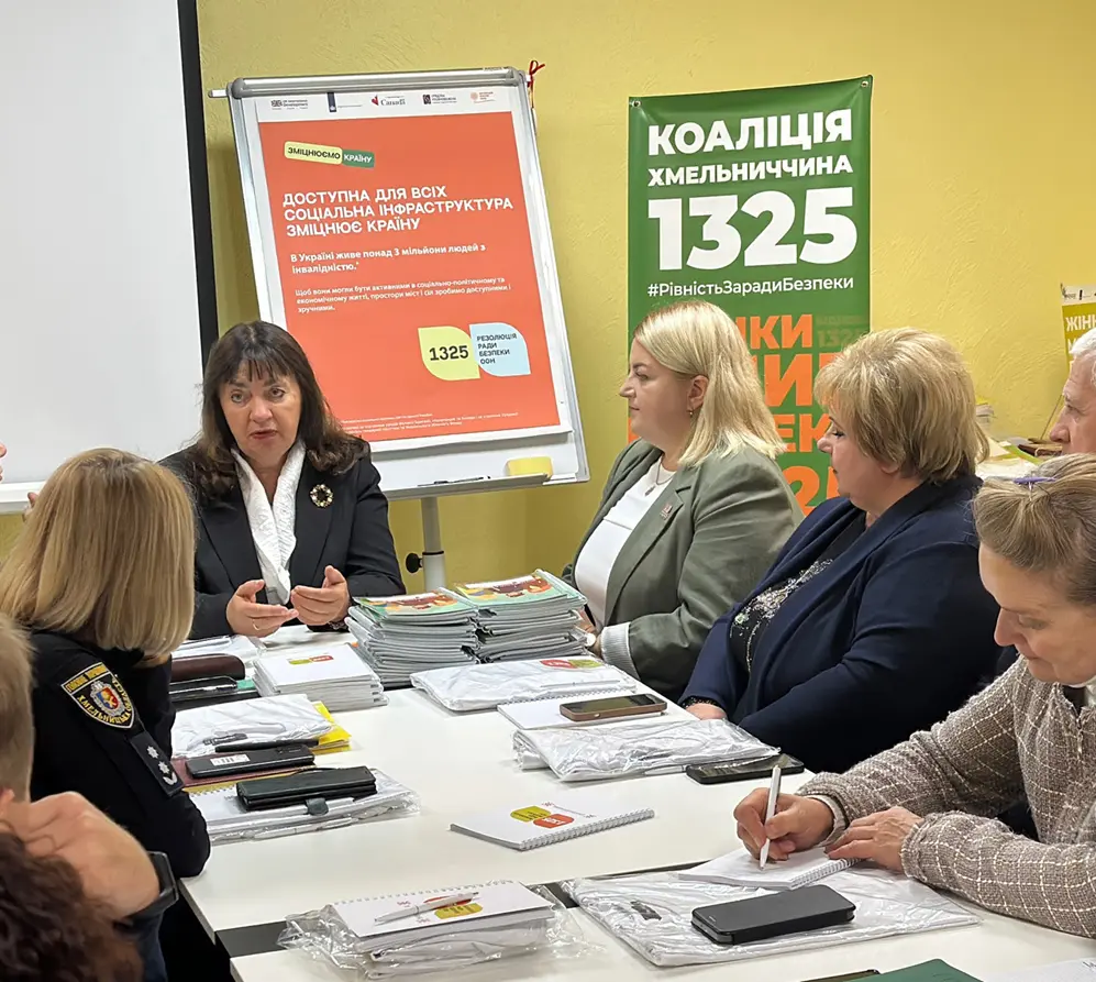 - Зміцнює регіональну співпрацю – зокрема, у межах Коаліції «Хмельниччина 1325» ми спільно реалізуємо місцеві ініціативи, підтримуємо захисниць, родини військових, жінок-лідерок і громадські проєкти. Коаліція 1325 відіграє у нашій діяльності роль партнера й підтримки: вона об’єднує, навчає, посилює наш голос у питаннях участі жінок, безпеки та розвитку громади.