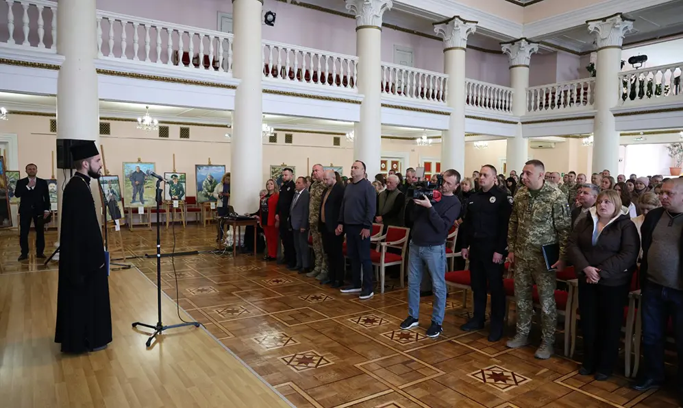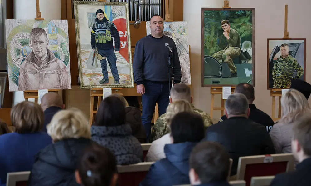 Участь у відкритті взяв заступник начальника ОВА Володимир Юр’єв, який подякував авторам робіт і родинам загиблих за збереження пам’яті про Героїв.