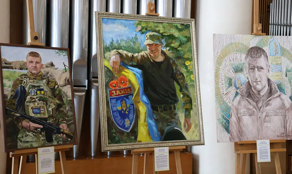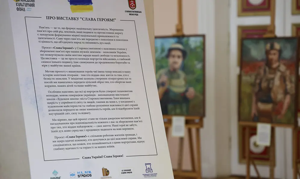 У Хмельницькій обласній філармонії відкрили мистецьку виставку «Слава Героям! Хмельниччина», присвячену вшануванню пам’яті українських воїнів, які віддали життя за свободу України.