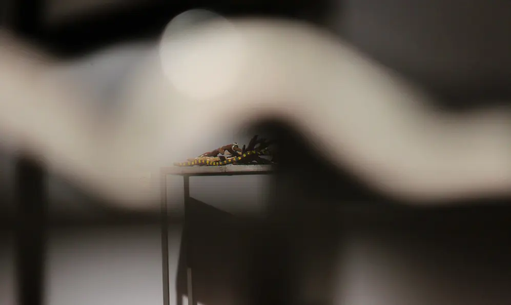 Поділимось з вами ще одним лайфхаком перегляду «лосту», як ті люди, які бачили експозицію залюднену і майже позбавлену людської присутності. Ці роботи варто роздивлятися у деталях, з різних ракурсів і нахилів, адже при такому довгому і ретельному спогляданні ти відшукуєш діалоги сенсів. Так, крізь керамічний череп, позбавлений життя та його пристрастей, ти можеш розгледіти інтимне вічне – «Лосиний гін», скажімо. Або ж, примруживши погляд, споглядати крізь рухливий «Дух небезпеки» залиття червоним всієї експозиції, як проявлення власне цього духа. Насправді дуже несправедливо не описати взаємодію з кожною з представлених робіт, але вона суто індивідуальна, тож це теж було б лицемірством чи нав’язуванням власної візії. Адже представлені роботи – це загублений в сумлінні альбом, розгортаючи який ти наважуєшся в першу чергу на діалог з собою, своїми страхами, обмеженням стереотипами, зрештою, травмами.