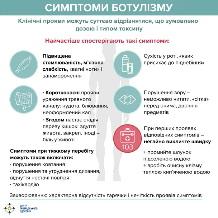 Первинний діагноз – ботулізм. Пацієнтці ввели антитоксин ботулінічний гептавалентний. Стан пацієнтки – важкий, – прокоментували у Центрі контролю та профілактики хвороб.